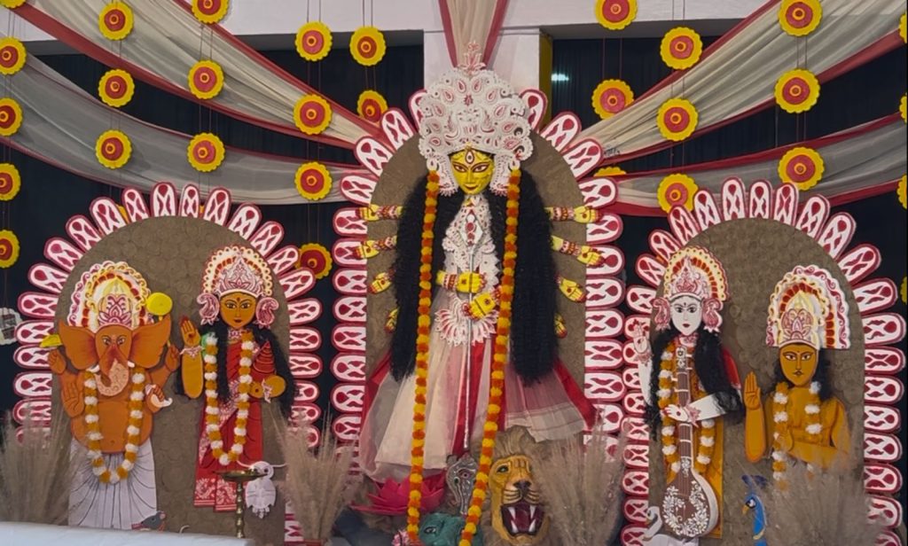 stunning single-structure idol of Goddess Durga made of jute and shola (pith) crafted by students and faculty of the Multimedia and Animation Department. Their artwork, complemented by intricate alpana designs and other handicrafts, rivaled some of the grandest Durga Puja pandals of the city.